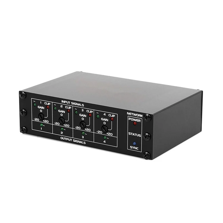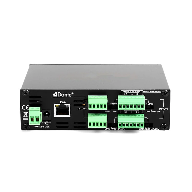 Rozhranie Dante Inputs 4 Mic a Line je profesionálne zvukové rozhranie založené na protokole Dante Network Protocol, ktoré podporuje 4 vstupy mikrofónu/linky a 4 výstupy. Jeho hlavnou výhodou je vysielanie vysoko kvalitných zvukových signálov s nízkou latenciou prostredníctvom sietí IP, ktoré sú vhodné pre scenáre, ktoré vyžadujú flexibilné zapojenie, vzdialenú prenos alebo viackanálovú audio integráciu.